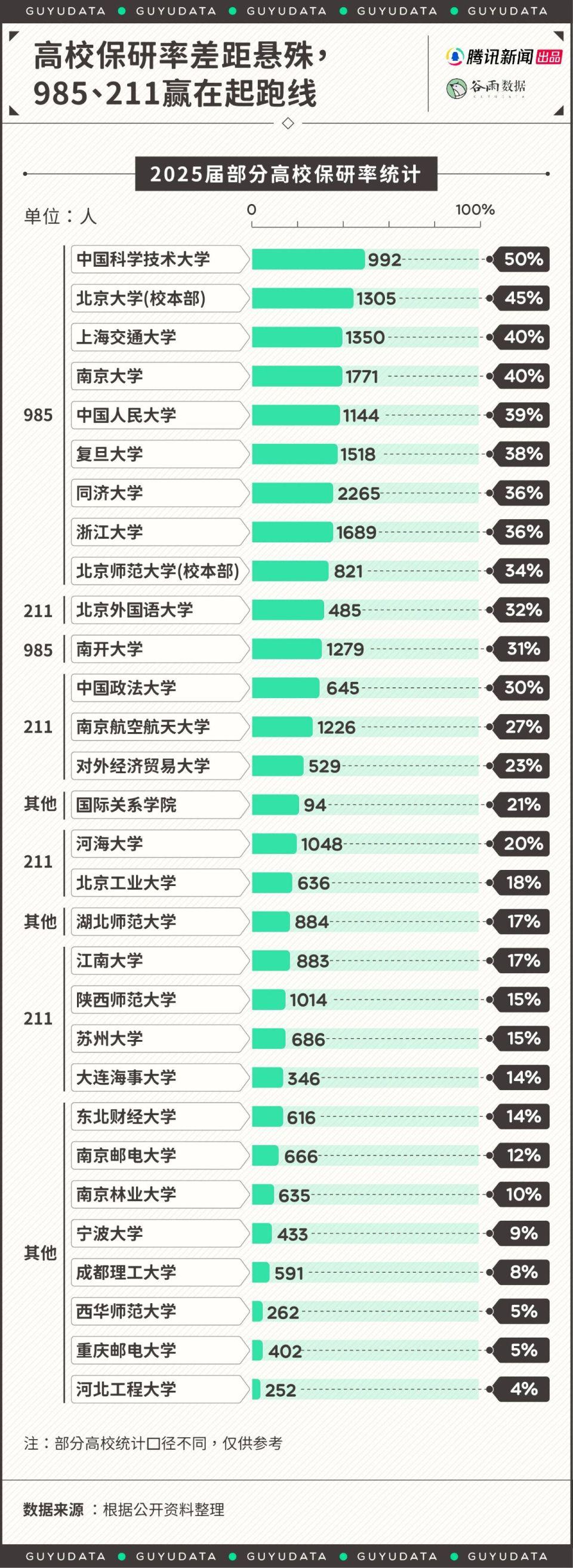 这种结构性差距,直接导致了院校间保研率的巨大悬殊。