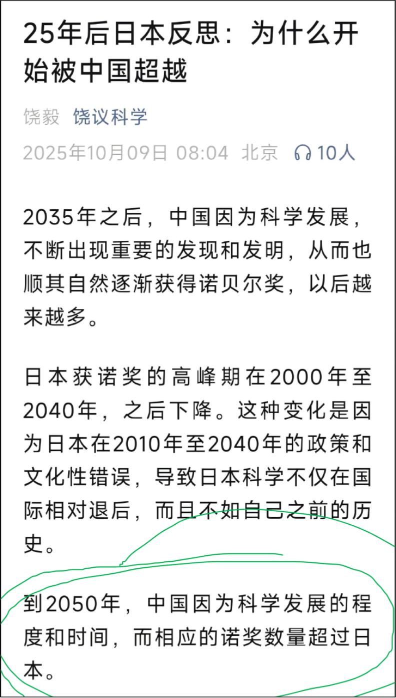 著名生物学家饶毅最近写文章表示,25 年后的中国诺奖数量将赶超日本。
