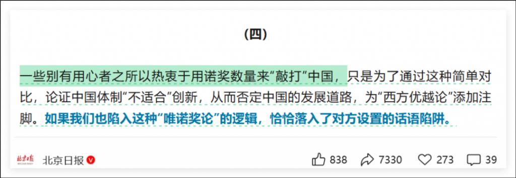 北京日报对诺奖的锐评很正确,但是呢