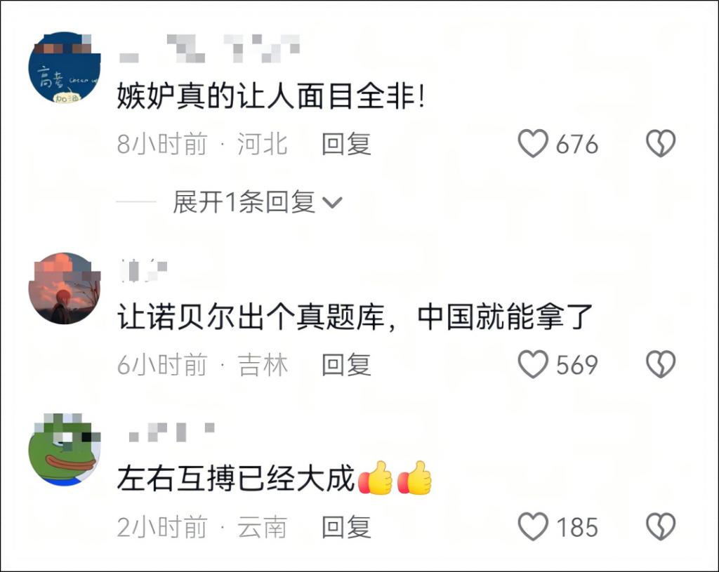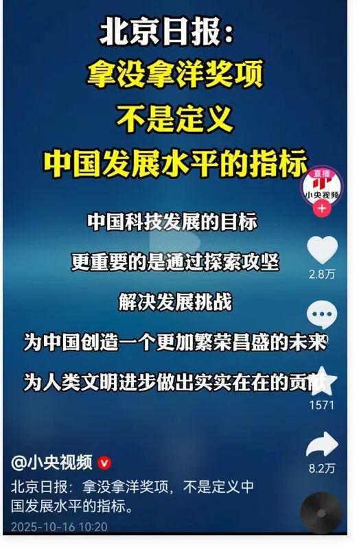 无论是抖音、知乎、还是小红书上,都觉得北京 · 日报是吃不到葡萄说葡萄酸了,嫉妒别的国家拿诺奖拿得多。