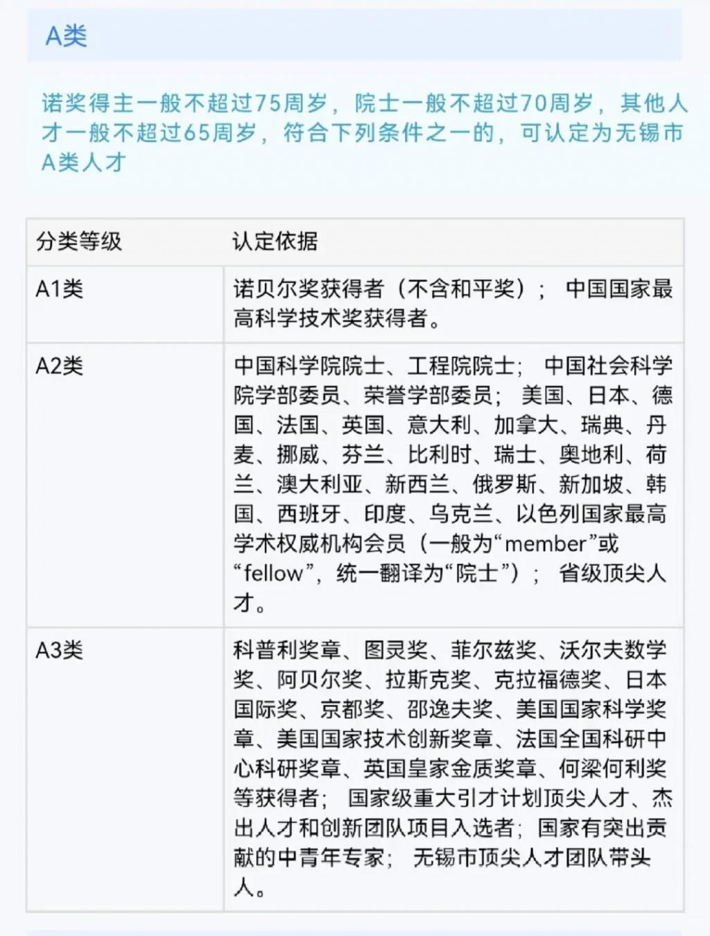 像无锡 A 类人才评选中,哪怕号称计算机领域诺奖的图灵奖,和号称数学领域诺奖的菲尔茨奖,都排在省级顶尖人才之下,侥幸和市级人才坐一桌。