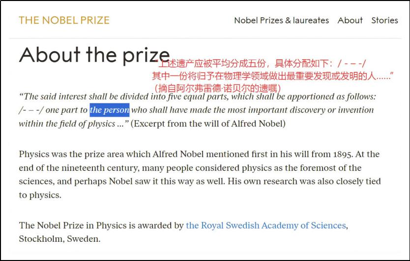 这点写在了阿尔弗雷德 · 诺贝尔的遗嘱里,也是每次大家关心具体颁给谁的原因。(上面我们也提到过颁奖理由)