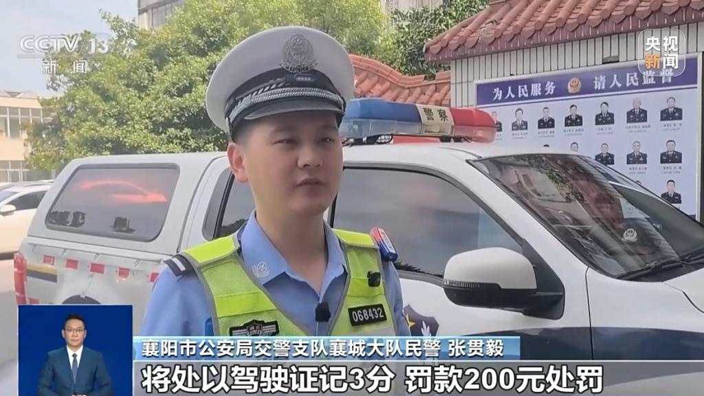 襄阳市公安局交警支队襄城大队民警 张贯毅:根据《中华人民共和国道路交通安全法》相关规定,白某存在驾车时有其他妨碍安全行车的行为,将处以驾驶证记 3 分、罚款 200 元处罚。
