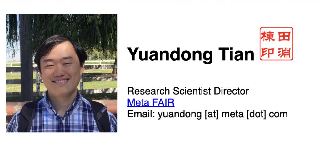 约在 2014 年,田渊栋加入 Facebook(现 Meta)的人工智能研究院(FAIR),至今已近十年。