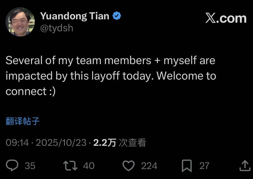 太疯狂了!Meta裁员裁到田渊栋头上,连组员一锅端