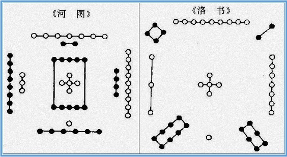 大家看,就是这个样子,河图洛书仅是两幅没有文字说明的图,是数字有序的星点排列,这种星点排列至底蕴含着什么?在揭示着什么?是谁创造的?又是一种怎样的智慧呢?