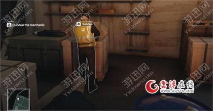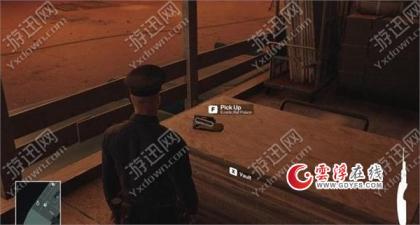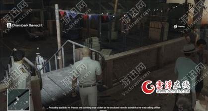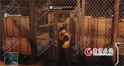 在游艇的右侧码头,一堆箱子后面找到那道栅门,用开锁工具开门。