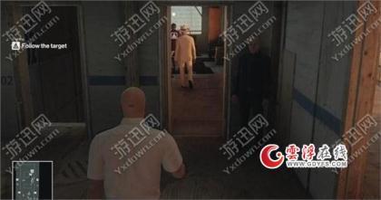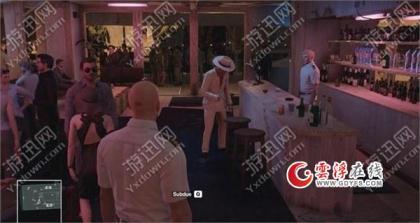 以维修工的身份登上游艇一层,按住Ctrl侦测一下,找到行刺眼标的位置,然后尾随他,结果在楼梯前的一名警卫阻住。每种制服人员有着各自的行动区域,得想办法换一套船员制服,这样才能在二层甲板活动。