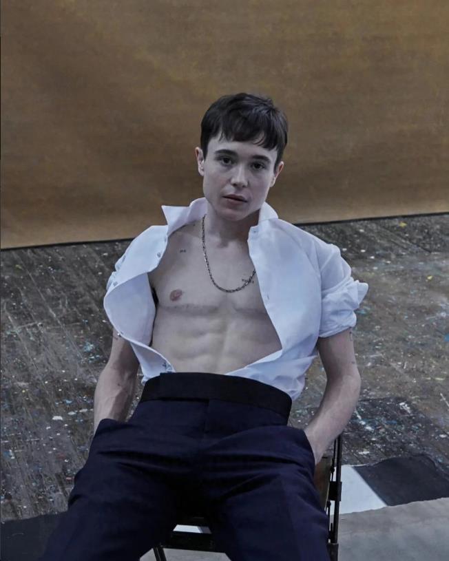 身上的手术刀疤还没有变淡,但是他已经练出了腹肌,在去年12月份艾略特·佩吉就登上了时代杂志的封面。