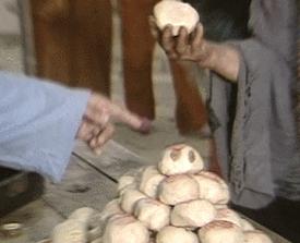 小摊老板见馒头脏了,抱怨了几句,还是送给了他。