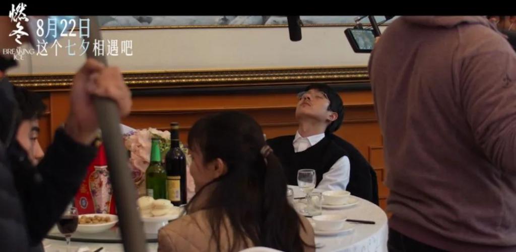 整场戏,刘昊然表演的关键词是" 静 ",这与周遭的喧闹形成了强烈的反差。