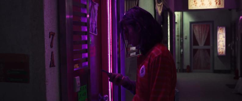 由此,无需额外的交代,观众就能感受到,外卖小哥不是个正常人。