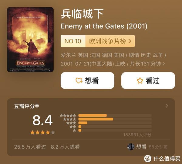 《兵临城下》可以称之为“21世纪的战争经典之作”,豆瓣将评分8.4,曾被央视评为最好看的狙击手电影!