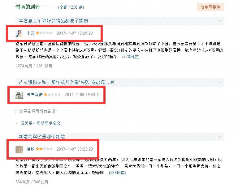 没想到刚播出两集,《猎场》的口碑令人大跌眼镜。豆瓣更是直接炸了,出现了大量打一星的网友。
