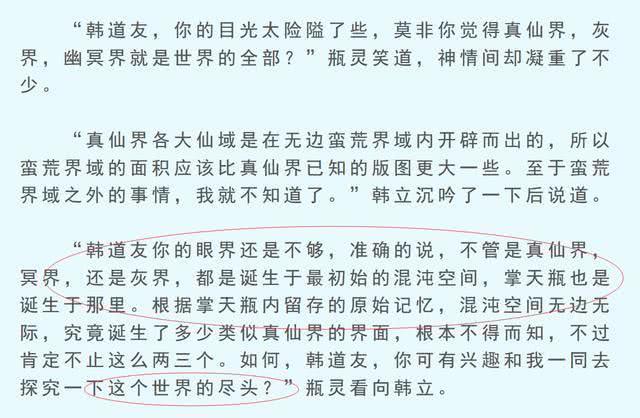 所以掌天瓶说的真仙界之外还有仙界,甚至还有混沌空间这样的神界存在,就是作者忘语为以后的神界篇留一手的了。从掌天瓶对于混沌空间的描述来看,混沌,不知道大家会想到什么,而我会想到中国的三皇五帝,元始天尊等等,很多的小说也是写到了这样的元素了。