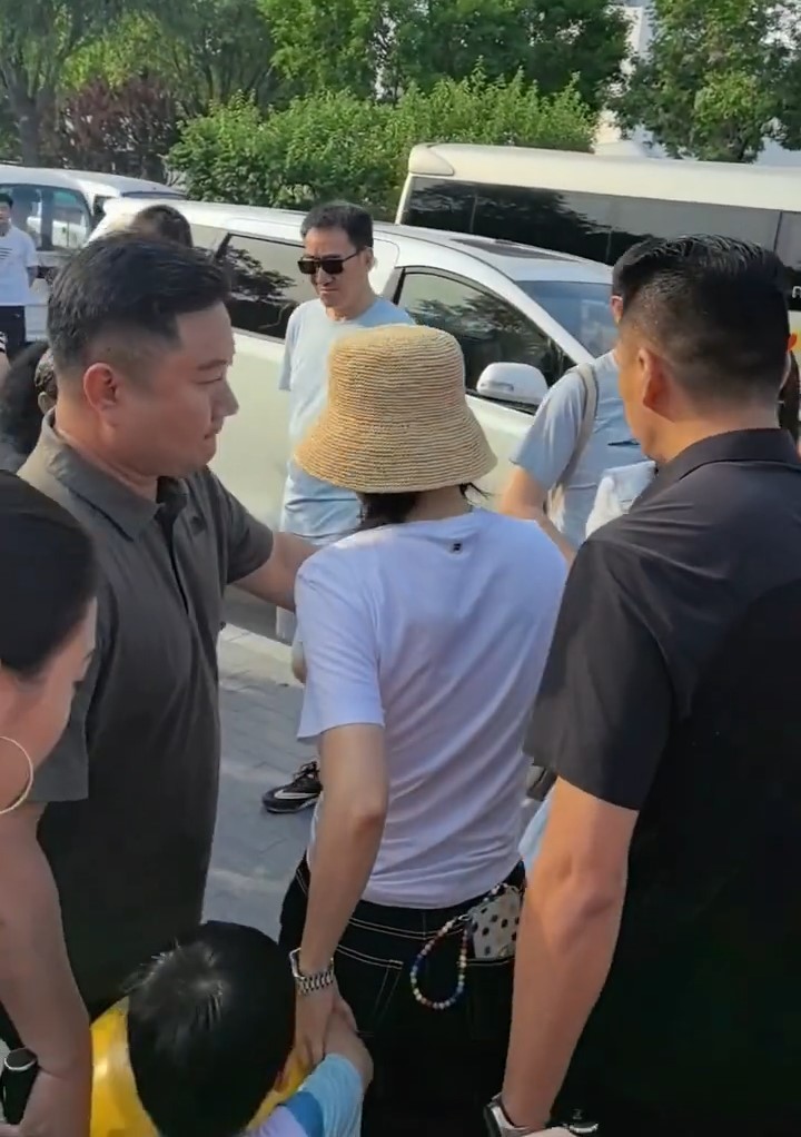 章子怡避开众人,马上拉住了自己的孩子,又迅速地把孩子送进了车里。