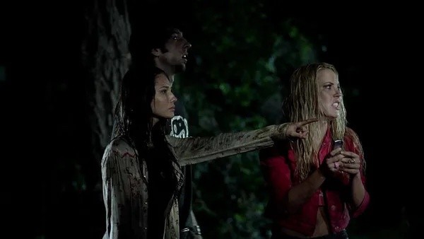 另一边,5位好友驱车前往山中露营游玩。谁知汽车半路离奇爆胎,几人相遇后,众人决定步行出去求救。