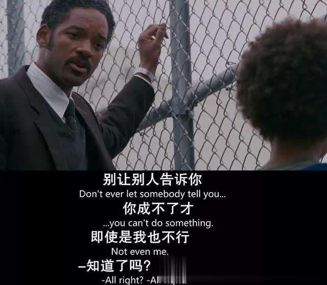 《当幸福来敲门》这个片名无比的美丽,而克里斯的生活场景场场残酷,常常被帐单税单来敲门,甚至无门可敲,底层得没有层。“我想编个理由让你们承认我的优点”,我想咬住梦想不松口,拖不死自己就拖活梦想。霜打的茄子,干裂的禾苗,以无比的毅力改了自己的天,换了自己的日,听到了幸福敲门的美妙声音