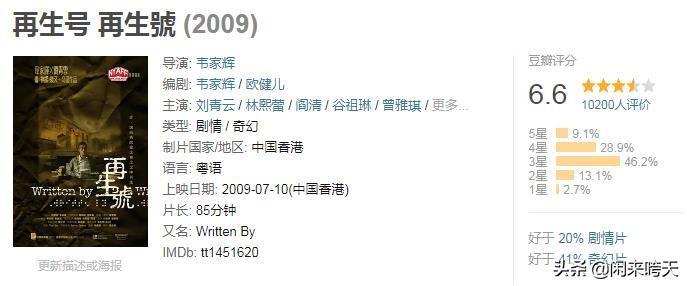 严格意义上来说,《再生号》已经是个老片了,但这个片子拍得很神,编剧和导演都是“银河印象”的韦家辉,故事看得特别烧脑,感觉分了好几层。笔者看完之后整个人都是迷迷糊糊的,喜欢挑战这类影片的朋友们可以试试。