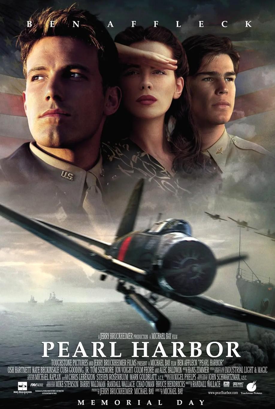 影片《珍珠港》是试金石公司2001年出品的一部剧情电影。由迈克尔·贝执导,本·阿弗莱克、凯特·贝金赛尔和乔什·哈奈特等联袂出演。影片于2001年5月25日在北美地区上映。电影讲述了雷夫和丹尼这对好兄弟在参军时结识女护士伊夫林。雷夫主动请缨参加英国空军的作战,被击落掉进海里。而伊夫林得知噩耗悲痛万分。丹尼和伊夫林慢慢接近,互生爱慕,最后发生一夜情。