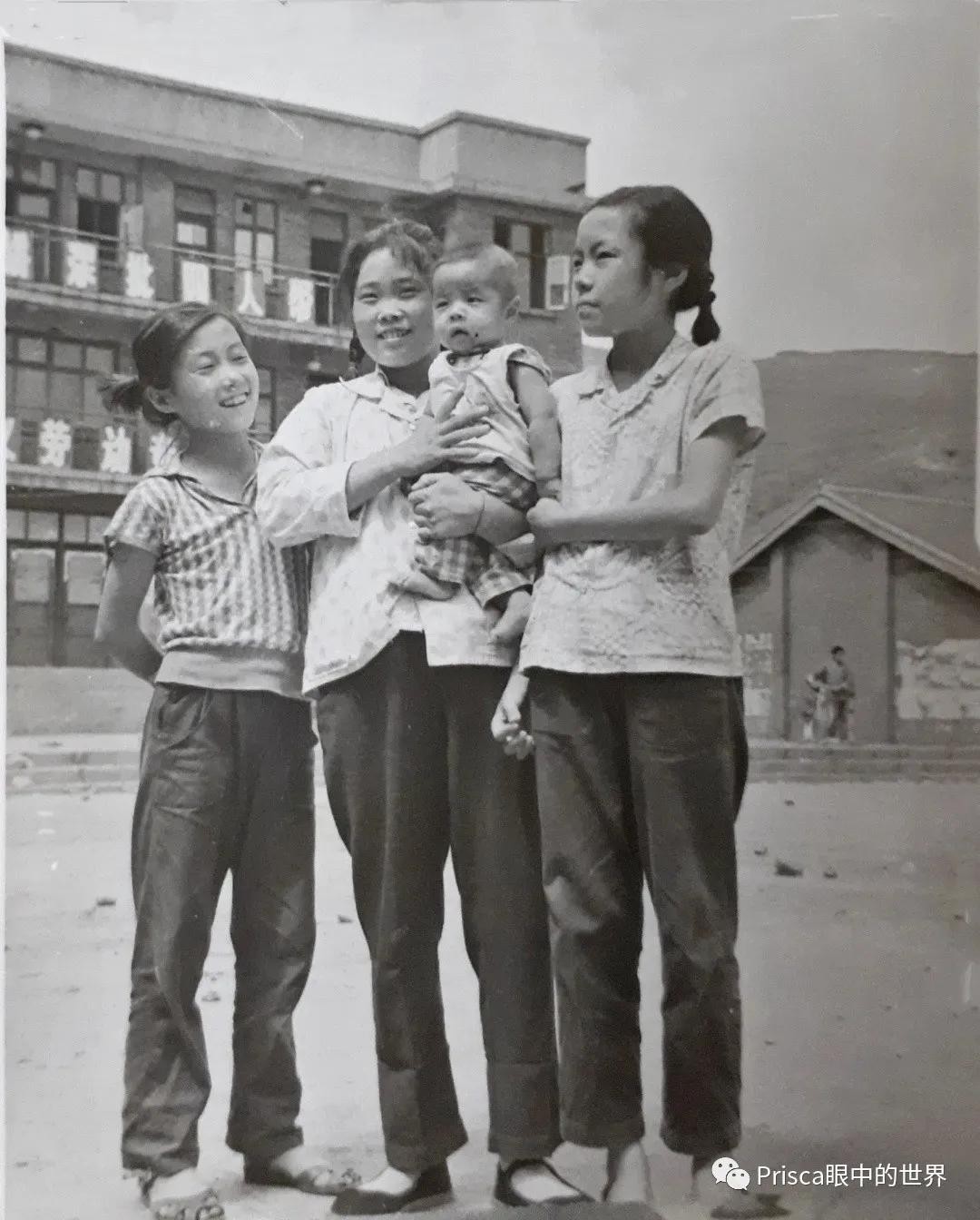 其实这座楼的原貌是这样的,这是1977年LP和她的姐姐弟弟及堂姐在大操场上留影。