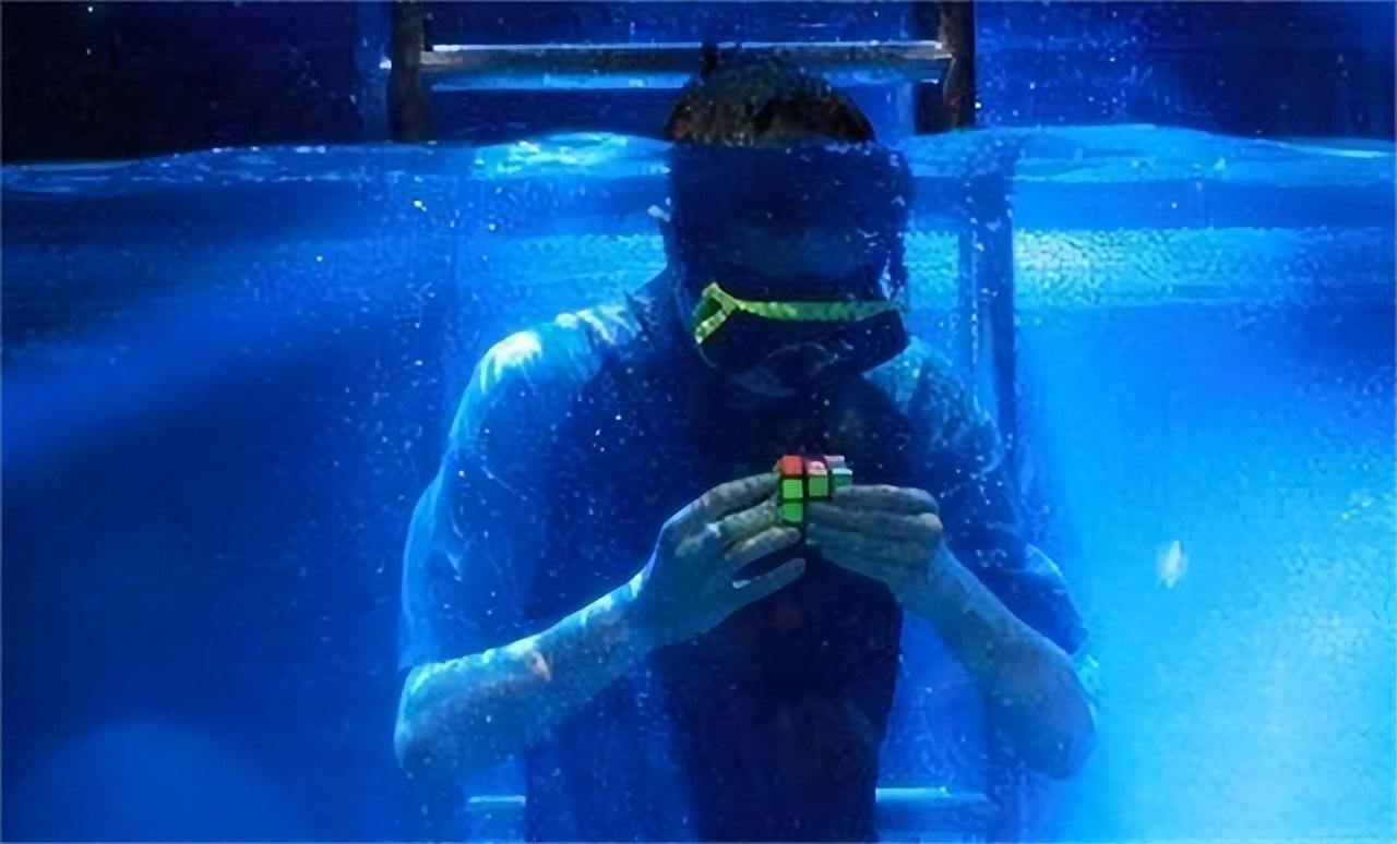 这一操作当时也是看呆了观众,要知道水下盲拧魔方已经很厉害了;