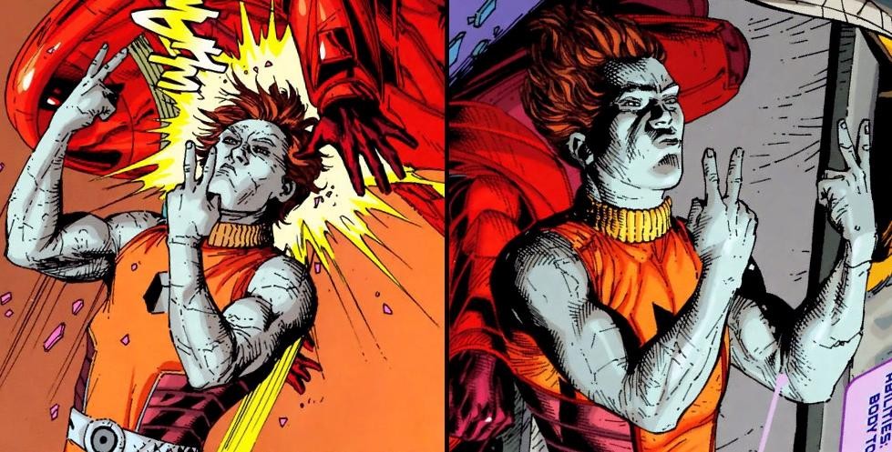 像钢力士这样的变种人很强大对吧?原著中也有一个类似的角色,但有些不同,石头男孩可以将自己石化,变成坚硬的石块,但是变成石头之后,他是无法移动的,因此便被认为是最无用的超能力,但是他还是和队友们执行了一些任务,战斗中,石头男孩变成石头后,被队友抡起来当作武器,这就是石头男孩,电影拍出来估计粉丝们会笑掉大牙。