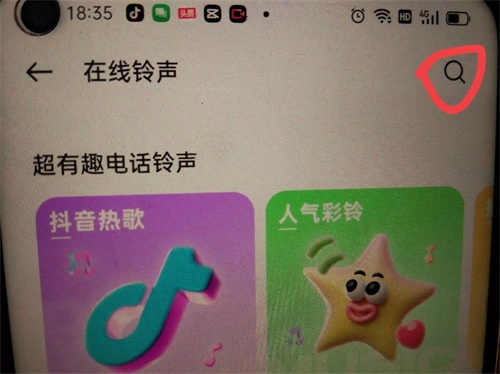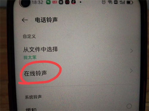 如果我们的手机里面没有歌曲,那怎么办?我们可以选择在线铃声,(如上图所示)