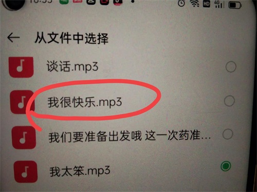 那么这些就是我们手机里面的歌曲,比如我很喜欢这一首《我很快乐》,那么我们就勾选一下,(如上图所示)