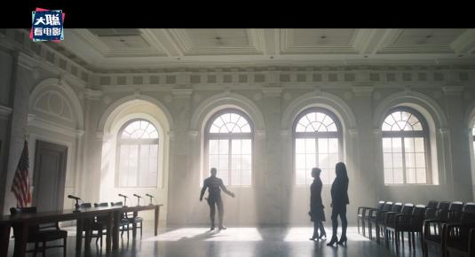 山姆洗了个澡换好了装赶往现场,巴齐在现场撞见了cosplay有点像吴彦祖的自己的莎伦,这项换脸技术此前在《美队2》中寡姐就有用过。