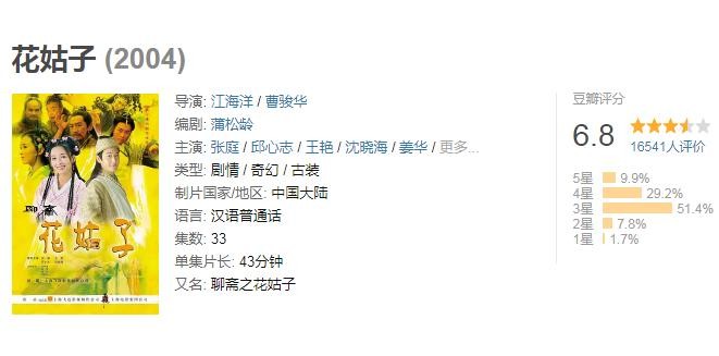 张庭扮演的花姑子,娇俏可爱,一双大眼睛灵气满满,公认的酒窝美女,初恋的感觉。这么多年过去,花姑子这个角色依然被观众所熟知,深入人心。