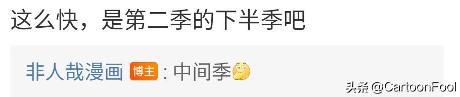 其实是因为这次要播的是第二季的中间季了,《非人哉》官博在回应网友的问题“这么快,是第二季的下半季吧?”的时候回答道“中间季”,