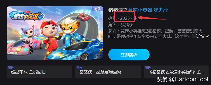 这些剧情图片都是P的而且官方核实就是假的,涉嫌故意抹黑了,所以大家不要轻信网络上的一些截图了!还有消息网传《猪猪侠之竞速小英雄9》是9月1日上映,也有网传是6月和7月上映的,但是这些都没有得到官方确认了,唯一有的消息就是在优酷的展示页,《猪猪侠之竞速小英雄9》是预计2025年上映的!