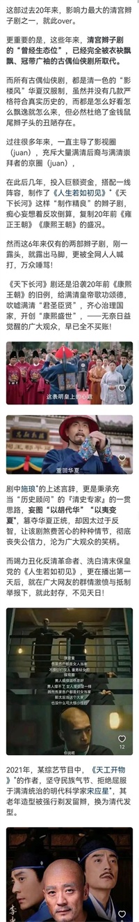 为何最近几年清朝剧越来越少了?网友:这些年明白人越来越多了!