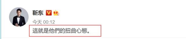 用咯噔文学自证清白后,气不过的靳东又发了一条动态表明自己的怒火,怒斥造谣者心态扭曲。