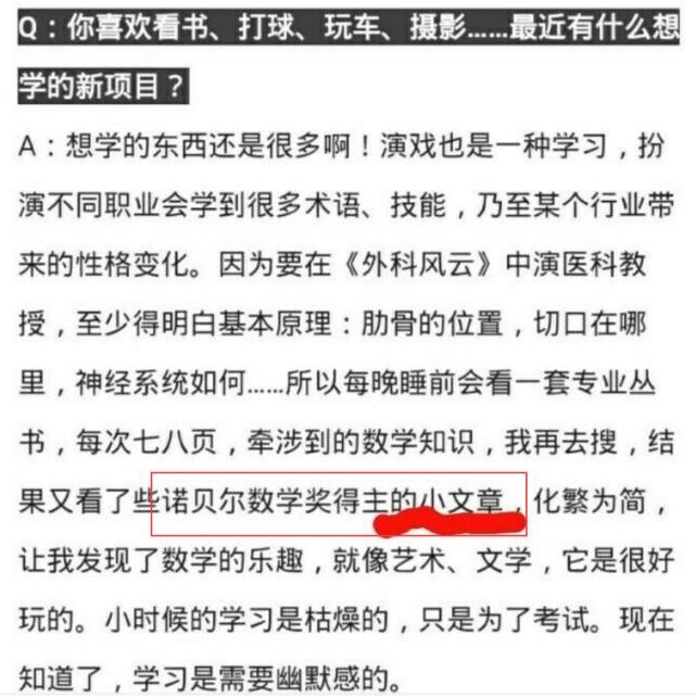 其实靳东早前也曾在“文化”翻过车,想必大家对“靳东数学家”这个梗都有所耳闻。起因是,某杂志曾曝光靳东的一篇文字采访,在采访中靳东称自己看了诺贝尔数学奖得主写的小文章,可并诺贝尔并没有数学奖这个奖项,这就很尴尬了。