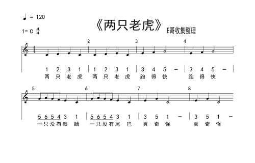 六、《两只老虎》曲谱简单介绍