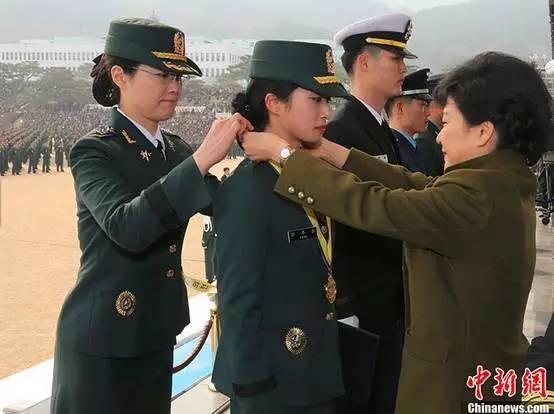 2013年,韩国总统朴槿惠访问位于忠清南道的韩国陆、海、空三军总部所在地——鸡龙台,亲自为女军官授衔