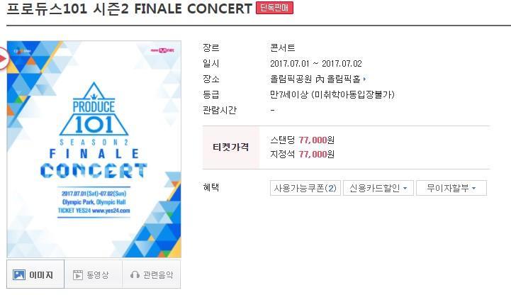 《PRODUCE 101》最终演唱会的预售票要价77000韩元(约2233台币)。