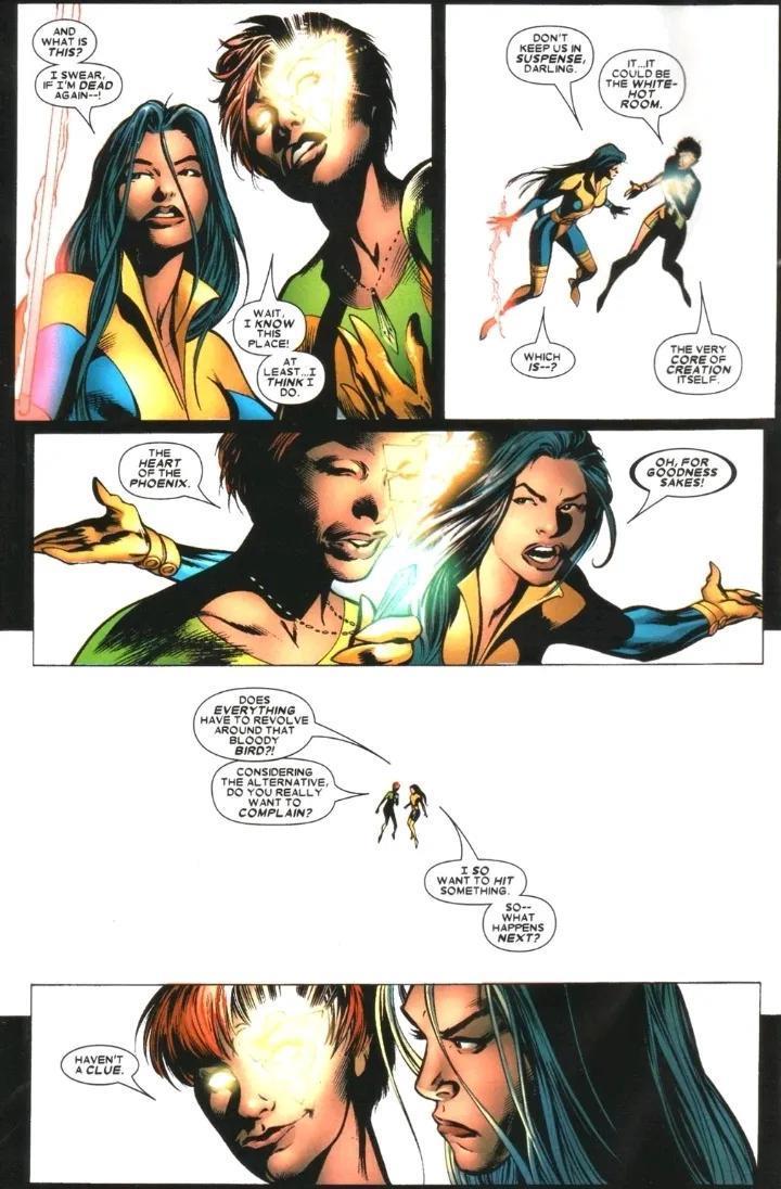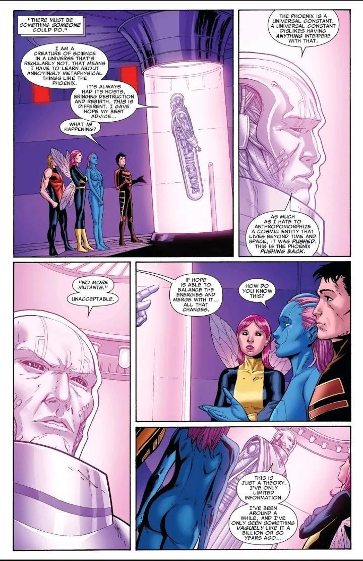 Unit指出凤凰是一股宇宙级的恒量,凌驾时间和空间,但它被女巫的「再无变种人」逼退,Hope的存在是为了平衡这股能量。