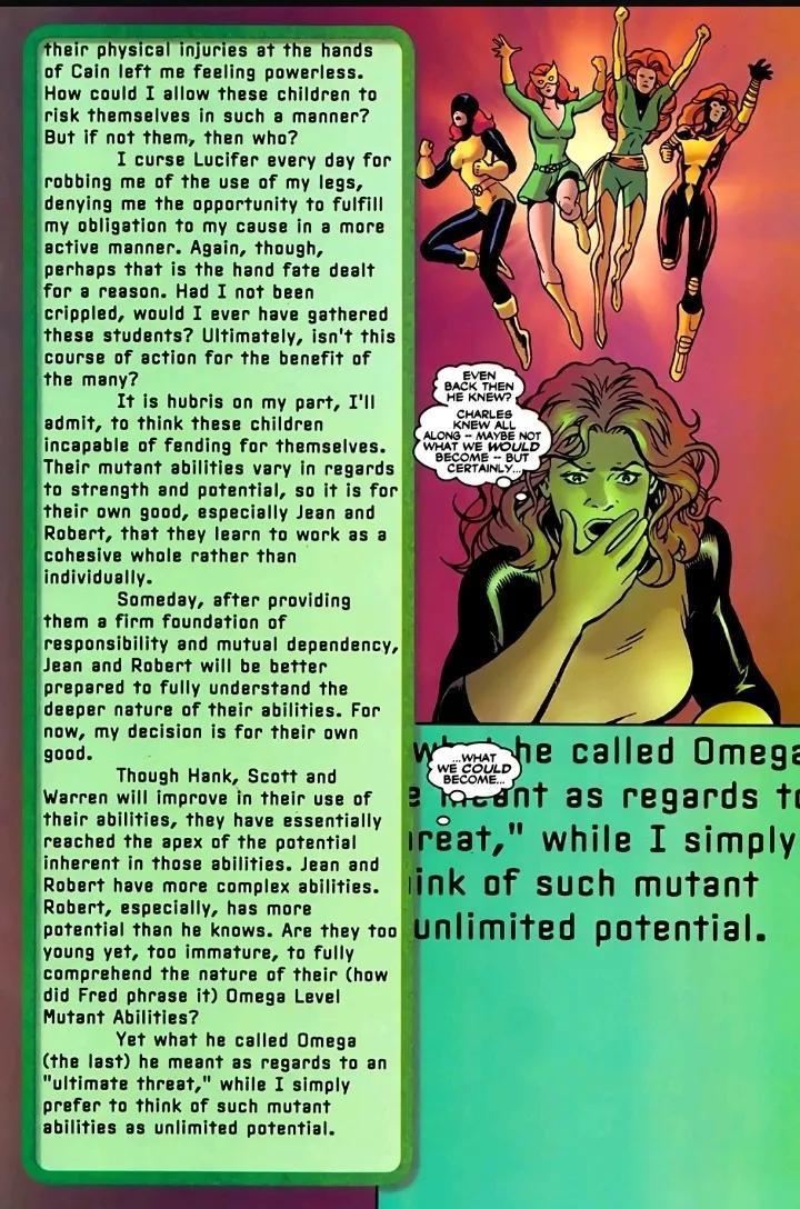 X教授指出琴·葛雷和冰人属于omega级別变种人,被指为终极的威胁及拥有无限的潜能。