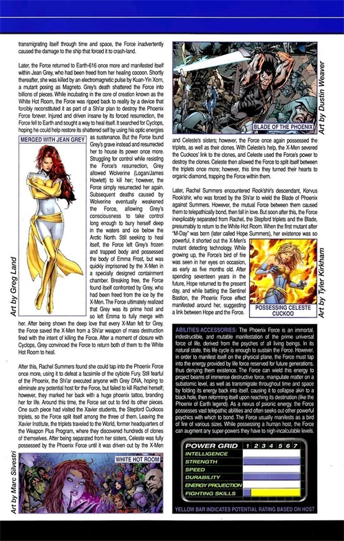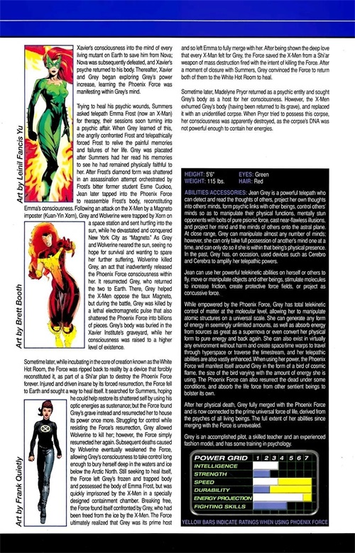 在她的肉体死亡后,格雷完全融入了凤凰的力量,现在连接到最主要的宇宙生命的力量,来自所有生物的心灵。自从与原力融合后,她的全部能力还未被揭示。