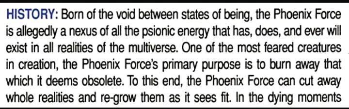 黑凤凰被认为是全能宇宙级別的毀灭力量,带来大量的死亡。