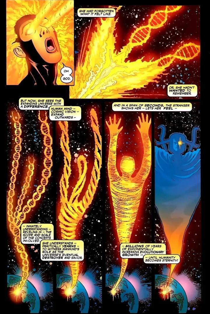 陌客 (Stranger) 指出在凤凰之力的引导下,人类最终将进化为永恒(Eternity) 。而掌控了人类进化与变种人,等同掌控了永恒。