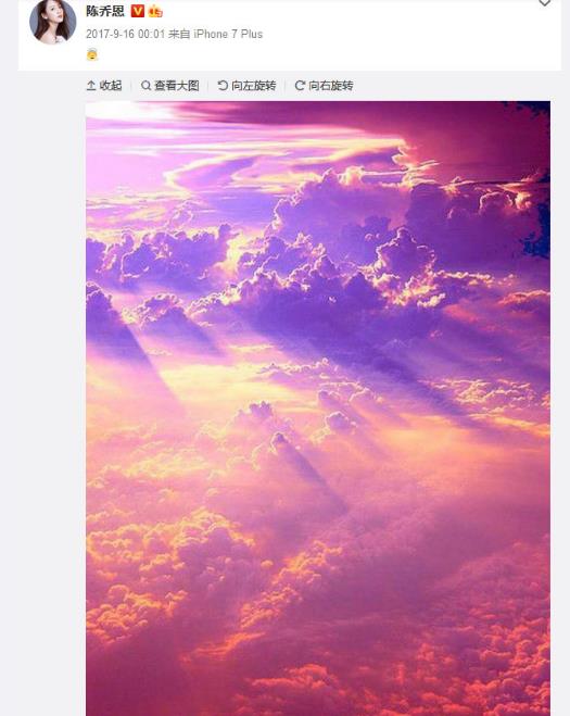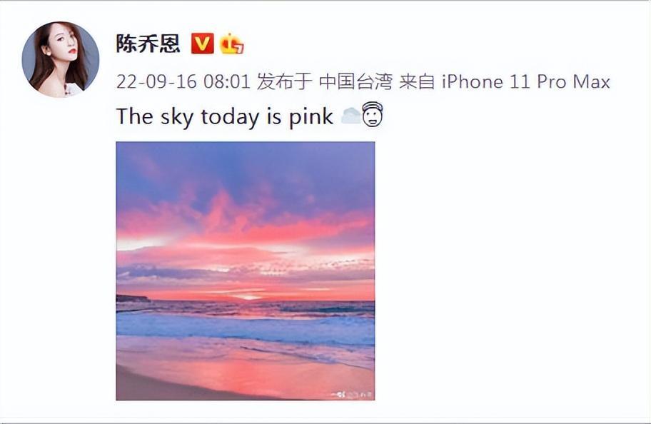 陈乔恩连续6年悼念乔任梁 晒粉色天空超用心