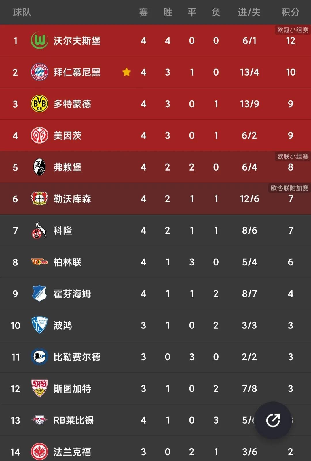 德甲让我意外啊,曾经也就多特蒙德可以跟拜仁拜拜手腕,前四轮排名第一的竟然是沃尔夫斯堡!真的是让我怀疑这是我认识的德甲,是我认识的拜仁吗?不过无论前面拜仁输多少,最后我都相信德甲冠军属于拜仁!