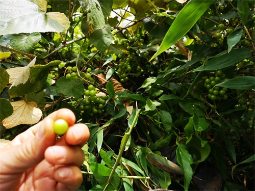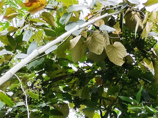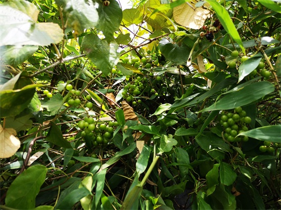野生葡萄又叫麻洋、山葡萄。相比家种的葡萄要小粒一些,没熟的时候会比较酸带点麻。生于灌丛中或山坡上,秋季采摘。葡萄藤沿着大树长很大一篷。比较不容易摘。