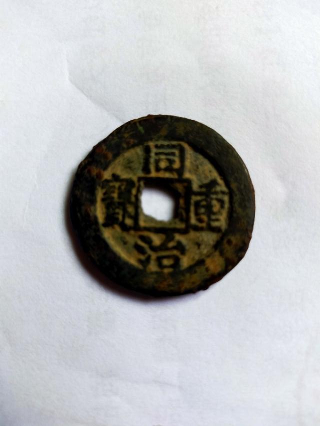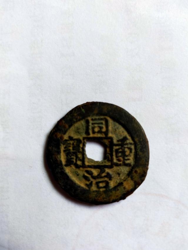今天中午,路过乡村市场,从古董地摊上,有幸买到了,一枚“同治重宝”。