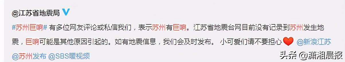 苏州发生巨响!网友称玻璃都在抖,江苏省地震局回应:没有记录到地震