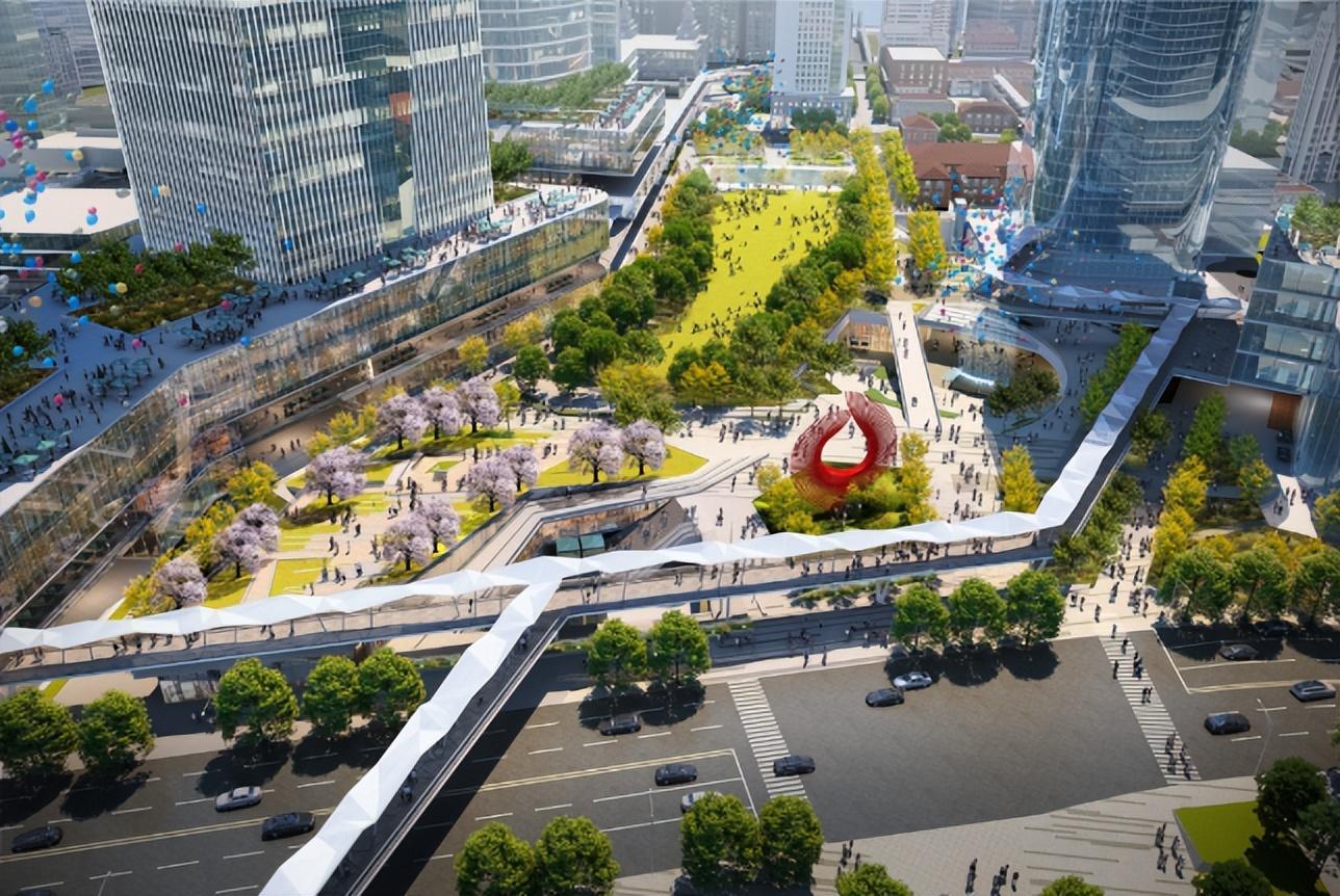 北外滩的每一栋楼宇都是通达的,二层连廊、地面慢行区、地下空间连通构筑起全方位互联的立体活动网络。而车辆将在地下流通,地上那些连通的空间都将打造成为绿化区域和行人区域。